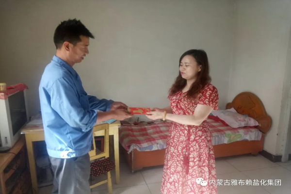 7月1日上午,在建党99周年之际,为了切实让广大党员感受到党组织的温暖,增强党员对党组织的归属感,进一步夯实党的组织基础,集团公司党委书记、董事长孙刚德、党委副书记、总经理李奎锦、工会主席张菊萍亲切看望慰问公司困难党员、老党员,为他们送去慰问金、慰问品,并致以节日的问候。在走访慰问过程中,每到一户老党员家中,都会详细了解他们的身体状况和生活情况,与他们亲切交谈,对老党员们为公司发展做出的贡献表示感谢,叮嘱他们一定要保重身体,并勉励他们继续发挥余热,为雅盐的发展献计献策。对生活困难党员,鼓励他们乐观进取、奋发向上、勤奋工作,通过自身努力,不断改善生活现状。