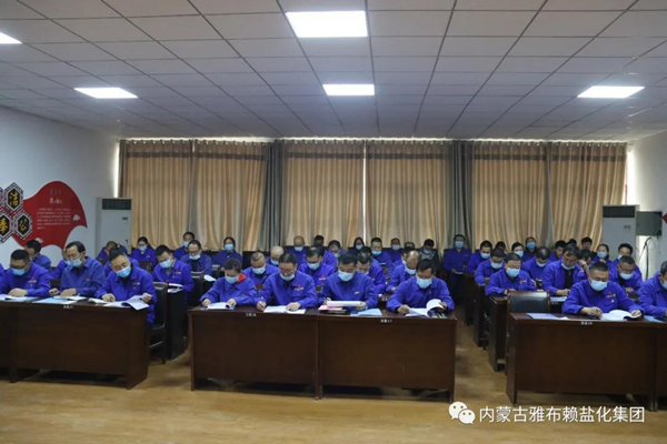 集团公司党委副书记、总经理李奎锦在会上作了题为《守正创新谋发展 擎旗勇进立潮头 奋力开创雅盐高质量发展新局面》的工作报告。 李奎锦在报告中指出,2020年,集团公司以巩固深化“不忘初心,牢记使命”主题教育成果为主题,以“化工项目建设年”为抓手,大力推行精益生产和精细化管理,持续巩固拓展销售市场,持续优化升级产品结构,延伸产业链,以创新理念、创新思维、创新举措,积极应对各类风险和挑战。经过不懈努力,圆满完成年度各项目标任务。 报告从五个方面回顾了2020年以来的重点工作:一是加大激励、加强管控,夯实基础促生产;二是多措并举、多管齐下,提质增量促销售;三是兴办实事、兴办好事,凝聚力量促和谐;四是大抓技改、狠抓项目,增强后劲促发展;五是正风肃纪、正本清源,优化环境促稳定。 报告明确,2021年预期经营目标是:集团公司本部全年计划生产各类盐品21.2万吨,成品加工盐2.4万吨,筑装小工业盐0.8万吨,销售各类盐品24万吨,实现营业收入5,350.00万元,回收货款6,000.00万元;实现税金980.00万元,实现利润总额380.00万元;内蒙古隆宝化工有限公司实现营业收入28,700.00万元,实现利润总额7,260.00万元,实现税费3,660.00万元,实现归属于隆宝总公司的利润总额2,500.00万元;内蒙古宇鸿能源有限公司实现营业收入430.00万元,实现利润总额80.00万元,实现税费40.00万元;内蒙古旭翔化工有限公司实现营业收入485.00万元,实现利润总额120.00万元,实现税费55.00万元;内蒙古雅布赖染料有限公司实现营业收入275.00万元,清收历年货款60.00万元;金昌金雅德化工有限公司计划生产硝酸4万吨,销售硝酸4万吨,实现销售收入7,500.00万元。